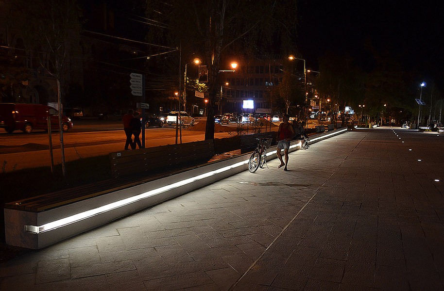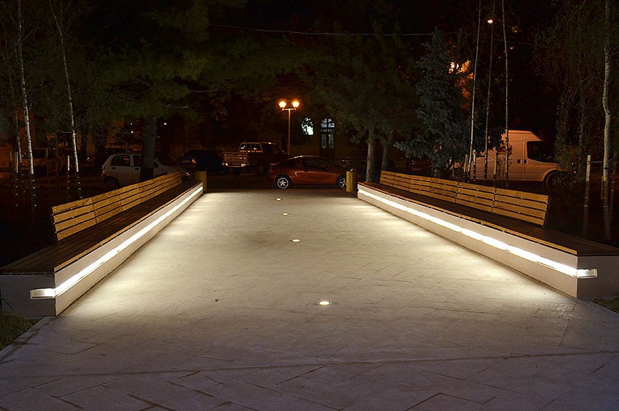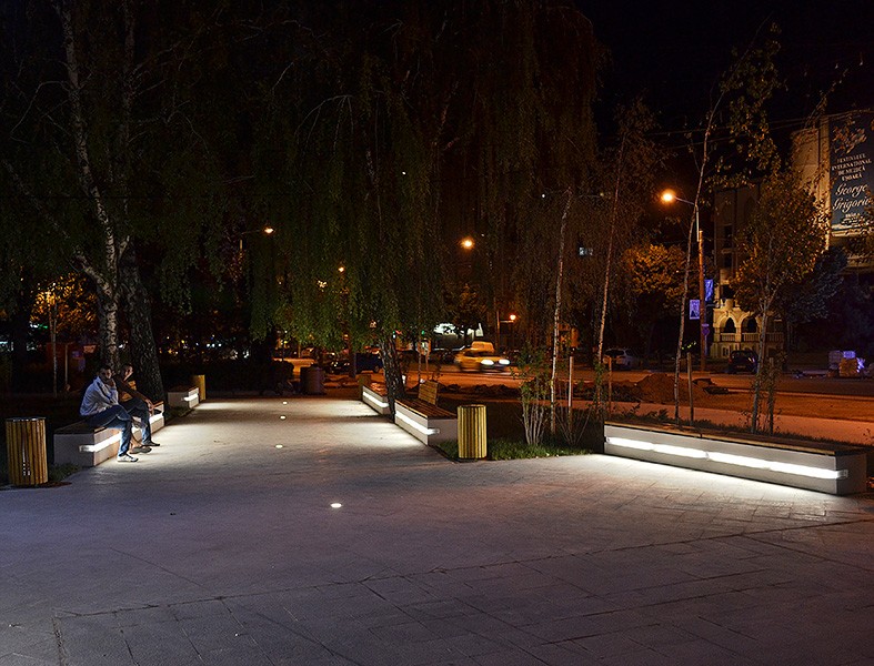Proiect de iluminat public cu LEDuri incastrate in zona Palatului Agriculturii din Braila, folosind proiectoare incastrate cu LEDuri