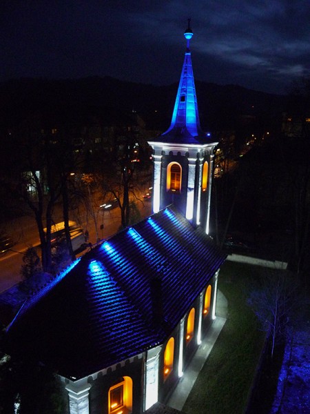 Proiecte iluminat arhitectural cu LEDuri pentru biserici, realizate cu proiectoare de tip liniar, culori: alb rece si amber