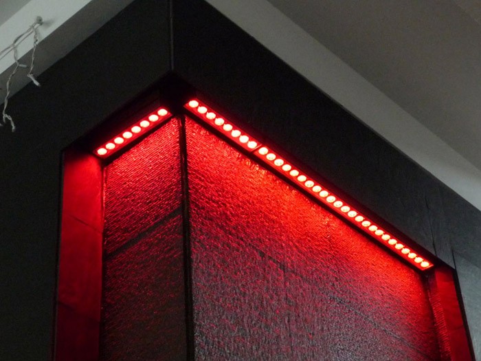 Proiect de iluminat ambiental si decorativ de interior cu LEDuri realizat cu spoturi incastrate cu LEDuri si proiectoare liniare cu LEDuri RGB comandate in DMX