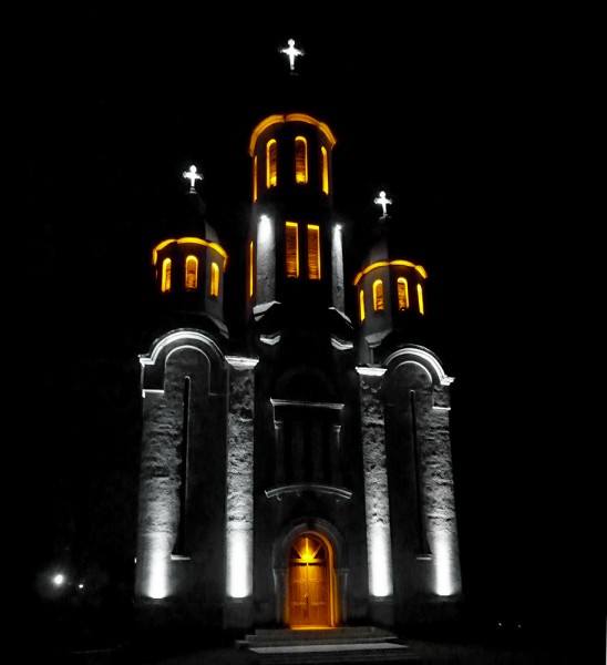 Proiect de iluminat arhitectural de exterior cu LEDuri pentru bisericile din comuna Baru, folosind proiectoare de tip liniar cu LEDuri alb rece si amber