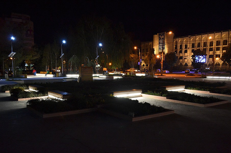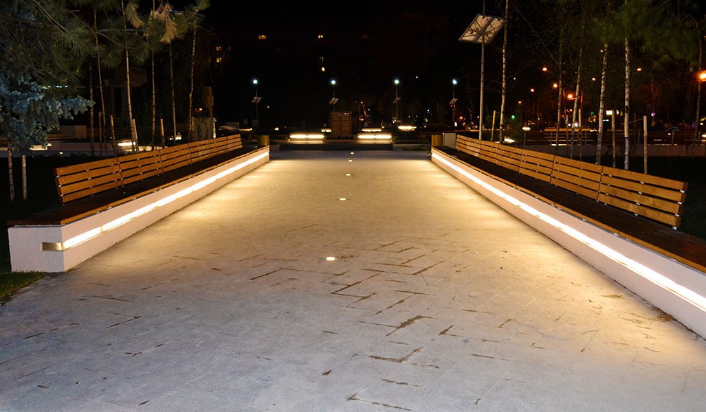 Proiect de iluminat public cu LEDuri incastrate in zona Palatului Agriculturii din Braila, folosind proiectoare incastrate cu LEDuri
